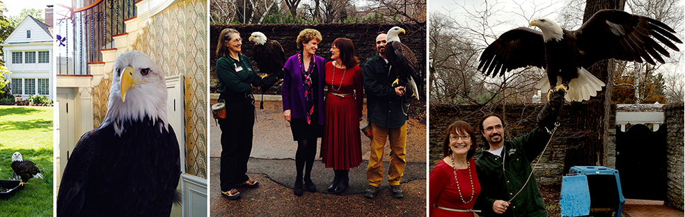 Besides the birds flying high overhead, University of Minnesota Raptor Center education birds visited Eastcliff for several events during our tenure there. A particular favorite mentioned in the book is Maxine (affectionately called “Max”). She was named for Madame Maxine, a half-giantess from the Harry Potter book series. If you haven’t been to the University of Minnesota Raptor Center to meet her, you are missing a remarkable experience.