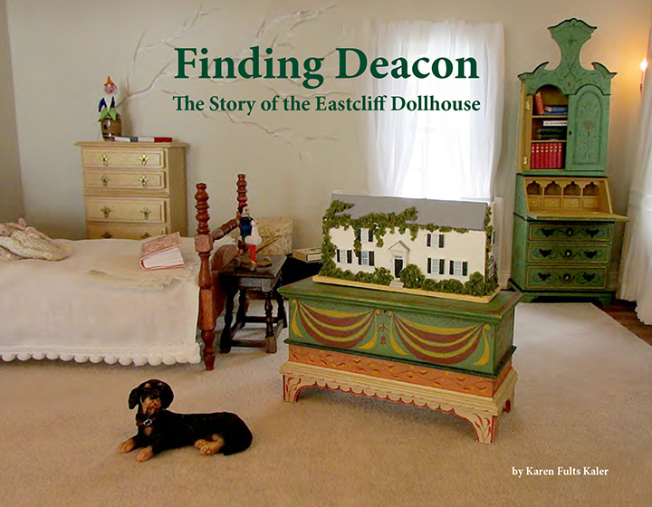 Brooks family pet Deacon, the dachshund, moves around in the dollhouse during the year. Adult readers are encouraged to share the book with children, finding Deacon together in the room photos, and then challenging each other to find other favorite objects on the pages.