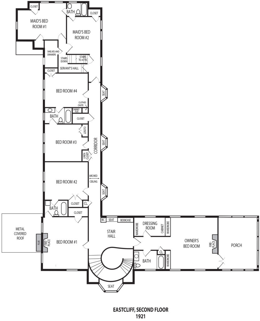Eastcliff was designed by Architect Clarence H. Johnston Jr. in 1921. He designed a major addition in 1930. Those plans included adding paneling to the bedrooms of the two older sons, including special secret compartments in each room.