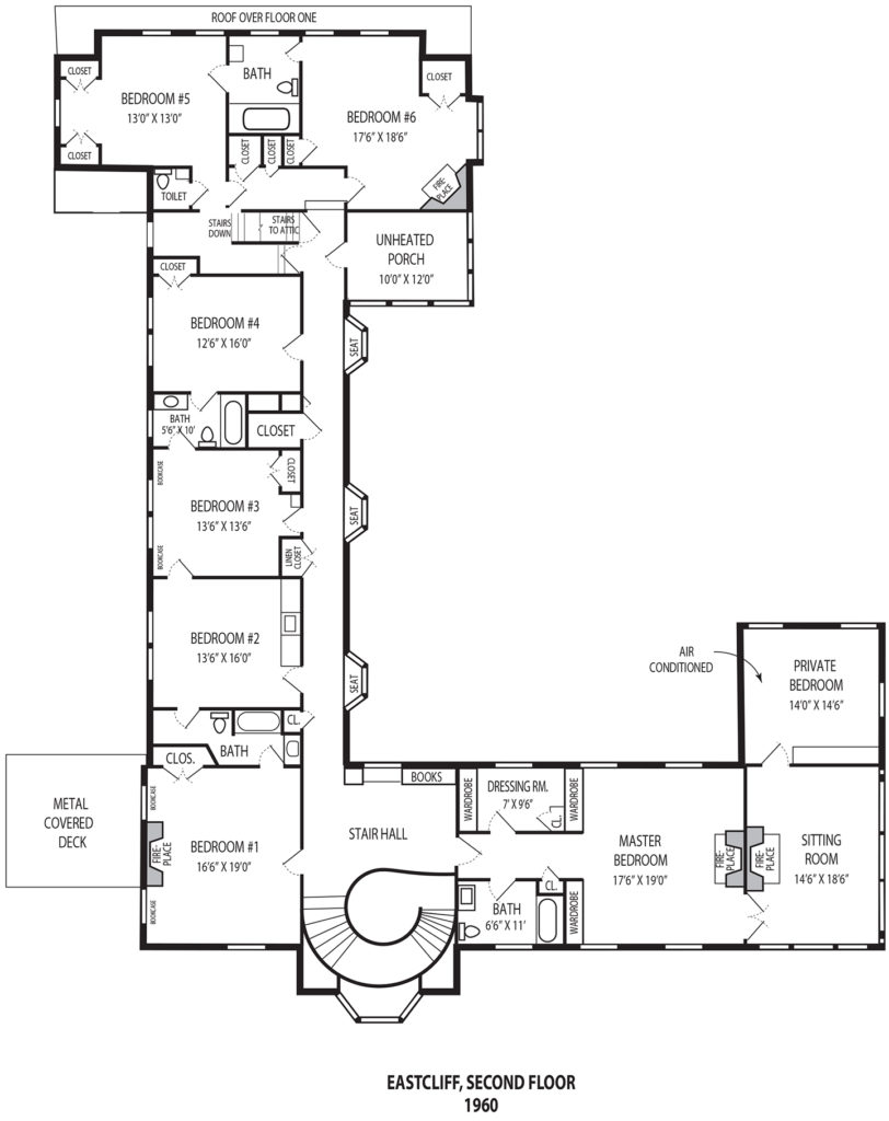 Following is a pdf file with higher resolution versions of all the Eastcliff floor plans (drawn by and copyright Karen Kaler).