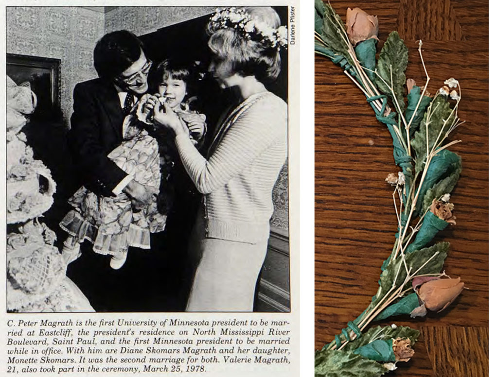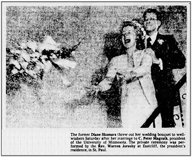 University of Minnesota President Peter Magrath and Diane Skomars married on March 25, 1978, in the Eastcliff living room, followed by a reception at the house.