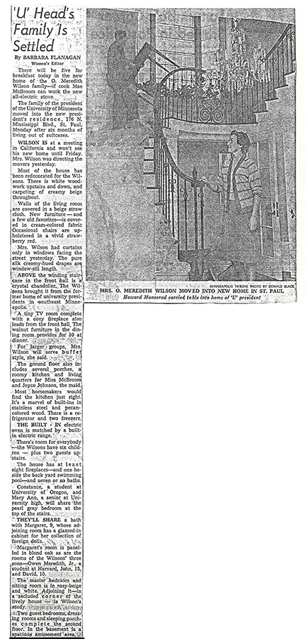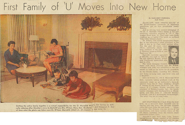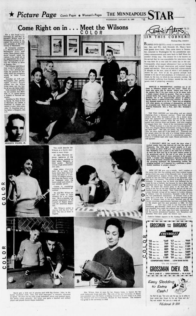 A January 20, 1960, Minneapolis Star newspaper article titled “Come Right In . . . Meet the Wilsons” introduced the new university presidential family to Minnesota. It included color photos—an unusual indulgence at the time.
