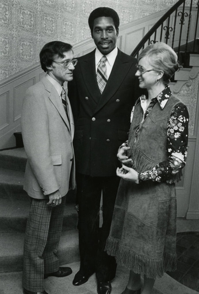 Photo: C. Peter Magrath, David Winfield, and Diane Skomars Magrath at Eastcliff, 1980 (This photo was particularly interesting to me because it shows the 1980 wallpaper in the Eastcliff grand staircase.)