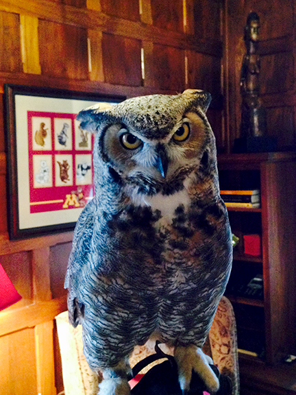 Kathy Moos had a pet pigeon named Hawthorne, whose story is told in Eastcliff: History of a Home. Hawthorne would walk along the beautiful stone wall between the Eastcliff main house and the carriage house. When we moved into Eastcliff, I noticed that the stone wall looked very much like the walls at Ashford Castle in County Mayo, Ireland. We visited there in June of 2011, shortly before moving to Minnesota. While thinking of the University of Minnesota’s amazing Raptor Center, I did a “hawk walk” with a hawk named Wexford at the Ireland School of Falconry at Ashford Castle. (I highly recommend it, if you’re in the neighborhood.) When I saw the Eastcliff stone wall with its green gate, I thought that Wexford would feel very much at home at Eastcliff. I imagine that Kathy’s pigeon, Hawthorne, was very pleased with himself to be strutting along this wall. Perhaps he felt like a hawk when he flew up to tell Kathy thank you for his great life at Eastcliff.