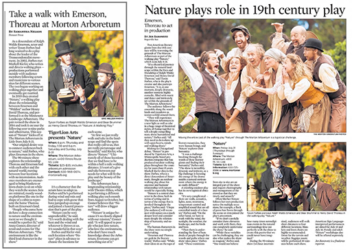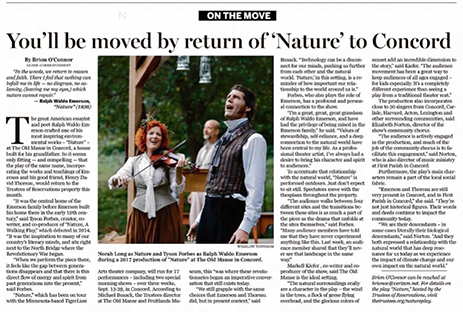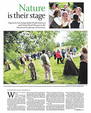 After “Tying the Knot,” Markell and Tyson collaborated on a walking play titled Nature. In the play, Tyson is cast as his ancestor, Ralph Waldo Emerson. The story focuses on Emerson’s friendship with Henry David Thoreau. From 2014 through 2019, Nature toured nationally and received positive reviews in Illinois, Massachusetts, Ohio, Iowa, South Dakota, and throughout Minnesota. A documentary based on the play, Nature: Walking with Emerson and Thoreau won a 2018 Regional Emmy® Award.